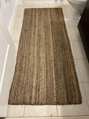 Jute runner rug purchased to match living room atea rug. Lays flat. Enhances my farmhouse look beautifully