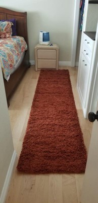 I bought this runner specifically for my main hallway to add some color (burnt orange). When it arrived, I was pleasantly surprised to see the beautiful color. Also, this long runner (which is hard to find) is super soft and fluffy. Highly recommend!!