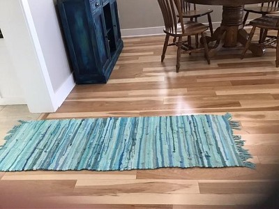 I bought two of these for our new lake home. The colors are beautiful. When I bought another two as back up, the runner was a completely different color. I was able to use it in my laundry room. I reordered and received the right coloration. I did not give 5 stars for two reasons. First runner’s fringe was very uneven and I had to trim up, ending with shorter fringe. Rag rugs can be washed, but these rugs do have ends pop up after washing. You will see in the photo.