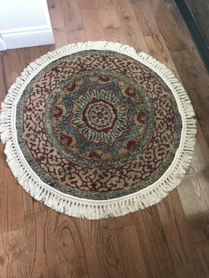 Cute rug. Just right for small table area. Takes a few days to flatten out but it will lay flat eventually. I purchased a 3’ round rug. Not disappointed!