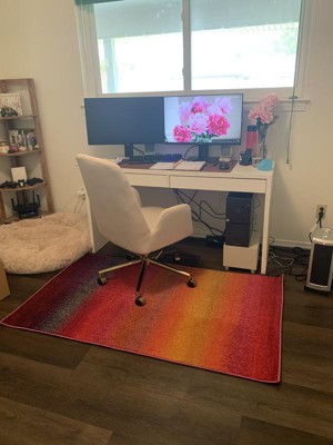 This rug has been advertised on my Facebook for like a year. I always wanted it. I FINALLY caved and bought it- and I am SO happy. It’s so gorgeous and ties together my whole room. It’s so vibrant and beautiful. The colors are so deep and blended well. The rug itself is short and soft. My puppy loves it as much as I do; she’s been sleeping on the floor instead of the bed since I got it! Lol