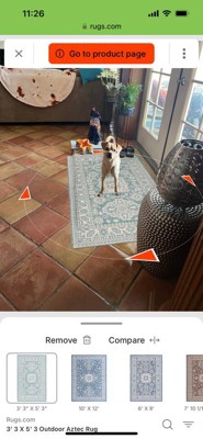 Got 2 (blue & beige) to try on Saltillo tile. New dog already had an accident on the way out the door, but cleanup was easy. Hoping garden dirt shakes off, too. Loved online feature to pretest the look.