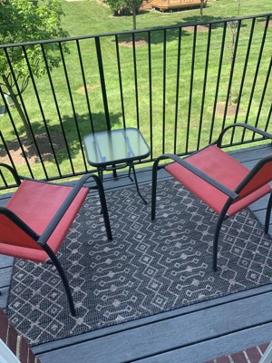 This rug gave some softness and looks to our concerete balcony. I looked at a lot of places and rugs.com had a great selection of sizes and patterns at great prices. More importantly, unlike many vendors, they separated the outdoor rugs from the indoor so you could easily select. Very pleased with my purchase!