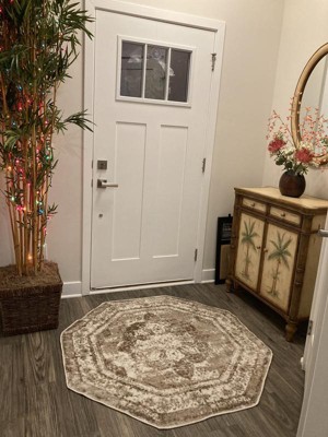 It’s hard to find an octagon shaped rug. I love the pattern with this irregular fade, especially for hiding dog hair or minor dirt stains.