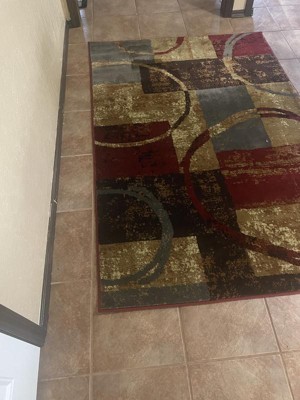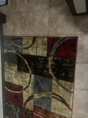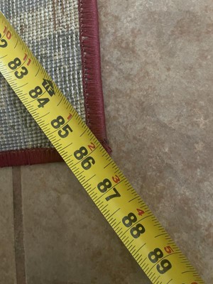 This area rug fits perfectly in my kitchen...just the right size and the design was made to go with the colors in my home. My elder dog lays down to eat and can not easily get up on smooth surfaces ...this rug is perfect for her too!