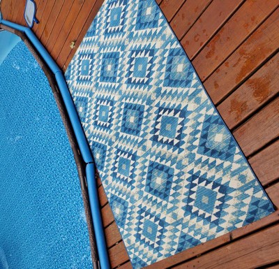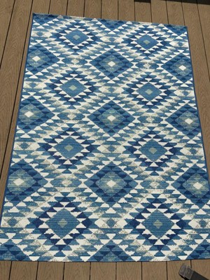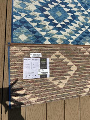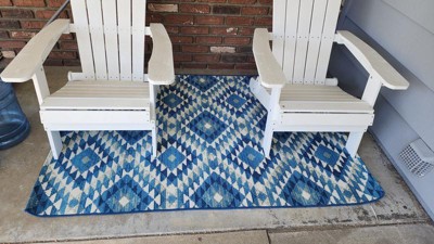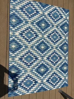 [This review was collected as part of a promotion.] If you love blues you will love this rug. It has a great mix of bold, vibrant blues! It is such a happy and cheerful pattern. I have it out on my porch and it is so much better than I have expected. I am worried that it will ultimately bleach out from the sun exposure, but that is unfortunately a side effect of the sun, not the rug.