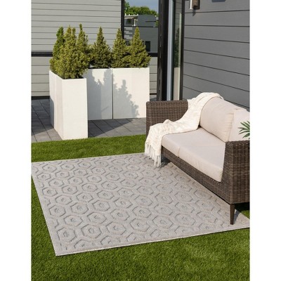 Unique Loom 4' 0 x 6' 0 Gray Outdoor Border Multi Border Area Rug