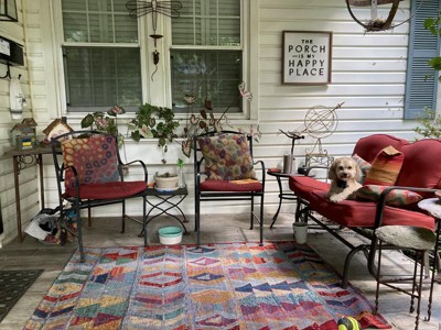 A very nice rug for our front porch. Color and design are bright, and, a good sale.