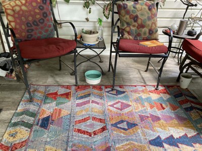 Love this rug! It brightens my day on my front porch. It’s rugged and can take weather