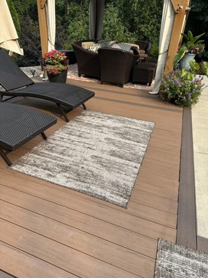 I ordered the modern rug for our composite deck around the pool. Shipping has always been fast with every purchase. The composite decking gets very hot in full sun, and we needed something to be able to step onto when walking from the pool to the lounge chairs. This rug was the perfect solution. I love the modern look of the rug plus quality is excellent. After ordering one previously of the same size and liked it so much I purchased another. You will need to purchase a rug pad for under the rug if placing it on composite decking to hold it in place.