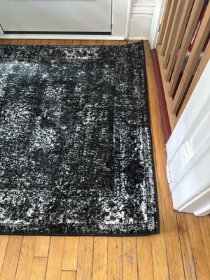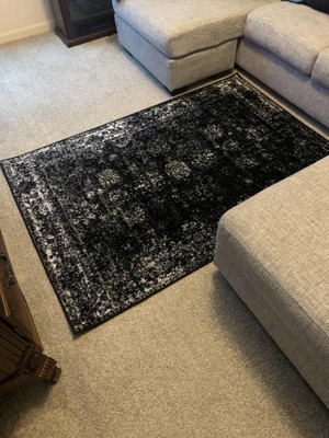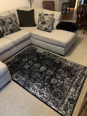 The rug is absolute beautiful; very nice for the price yet looks expensive. It is soft to walk on but firm enough to uphold traffic! My wife loves the black and white mixture in color!