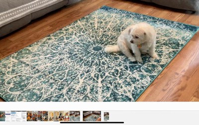 This carpet is soft and the color/pattern is beautiful. The only thing when you first get it and unroll it it was hard to get it to flatten out.