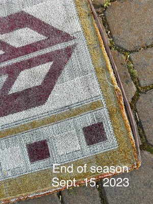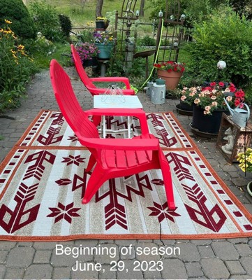 I purchased 2 of these outdoor rugs last June. They did not even last a 3 month season! The colored knap started coming off mid summer and it was falling apart by mid September. Sorry, will not be a repeat customer!