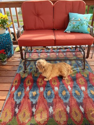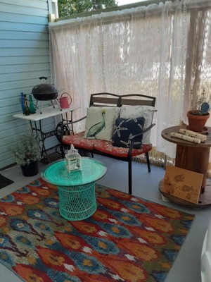 I put my new rug on my tired old porch. I'm so happy with it! The vibrant colors brought it back to life!