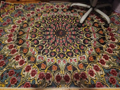 Love this smaller rug for under my dining table. My cat loves it too, he was rolling around on it ha ha! Color and style match my other 12.2' x 9ft Carnivale rug I bought. So happy with both!