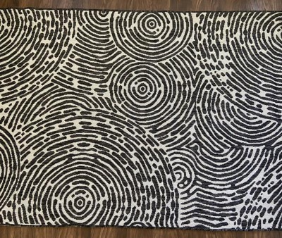 [This review was collected as part of a promotion.] This rug is very eye-catching. So eye-catching that if you get only one, you'll want to kick yourself! I like mine so much that I decided to use it indoors. It's not a thick or plush rug but, I have modern furniture and classic black and white decor and a section of tiled floor I don't like walking barefoot on. It's a perfect fit and feels good on bare feet. The rug is cut perfectly rectangularly and the edges are finished. It arrived in a transparent sleeve so be sure to bring it inside the moment its at the door or get it delivered somewhere safe. My rug arrived today and for now the edges are a bit curled but I know a few passes with a vacuum will get it to ease into a flat form. The pattern reminds me of a fingerprint and is therefore very unique.