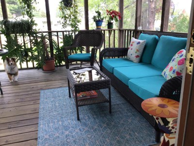 I just love the comfy look this rug makes on my terrace. I feel like I have an additional room.
