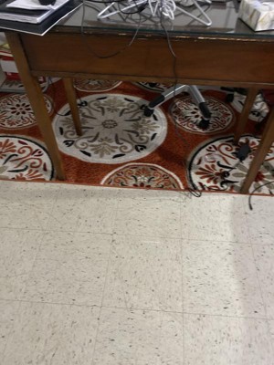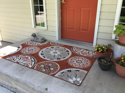 This rug adds a splash of warm colors in an otherwise dull hallway. The design reminds me of Pennsylvania Dutch Hex Signs and the raised needlepoint adds texture and interest. It's hard to decide with so many styles in Rugs.com,but,I am a very happy customer. The Service is outstanding
