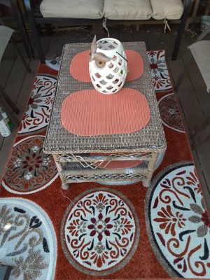 Rug is vibrant, well made, and as described. I bought the 9'x12' and got this one to match across my large deck.