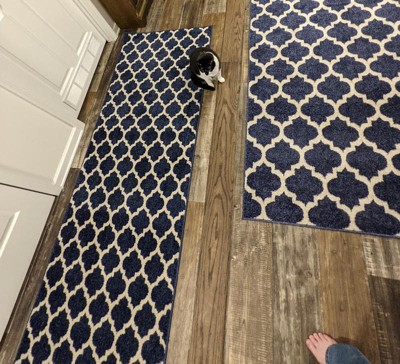 I love my rugs but could not give them five stars for one reason. I bought two of these in 4x6 size and also bought a long runner for my odd shaped hall. The rugs do not match the runner. The pattern is larger on the rugs, the color (blue) looks different and they are not as luxurious feeling. Its like they took the runner image and enlarged it for the rugs. There are six "emblems" across on the 2 ft runner runner and six "emblems" on the four foot rugs. It looks kinda weird but I'm keeping them because its obvious they go together and it's all I could find for my odd shaped hall.