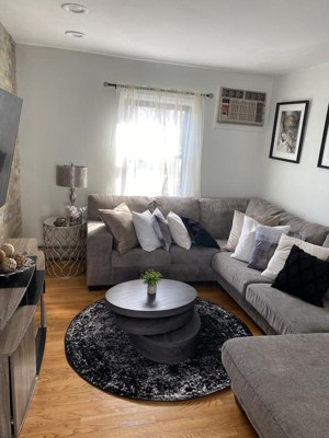 This round rug was perfect for the space. I knew I wanted it to be black but plain black was just too dark. This was perfect.