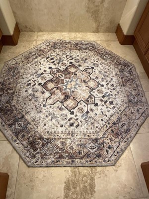 Beautiful rug! Exceeded my expectations- the shape, colors, and quality. I have not washed it yet, though, so can’t review the washability yet. So far, love it!