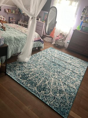For her 12th birthday, our daughter asked to upgrade her bedroom decor to a teenager decor. She found this particular area rug, in the perfect teal color, and fun design! She was so excited to get this! It looks perfect in her bedroom! Super soft, and so pretty!