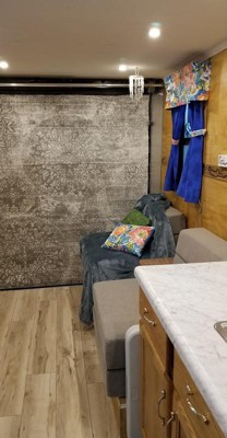 I wanted a somewhat neutral color and design as the rug would have a dual purpose.... artwork for the wall and comfortable floor on the deck when the ramp on my camper is down. It had to be cut to fit but that gave me a second rug for my kitchen and bathroom area. I love my rugs!!!! ❤
