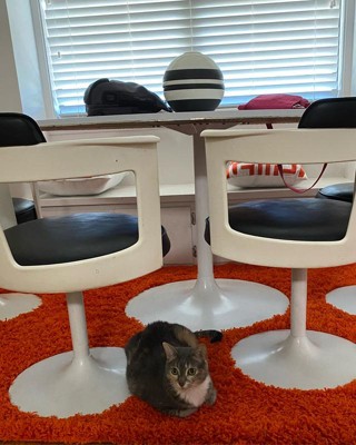 I have been looking a long time for the perfect orange shag rug to go underneath my tulip table and chairs. Found it here at Rugs.Com. We also bought the non-slip rug pad and it works great. As my kitty Thalia would say, "It's Purrfect!".