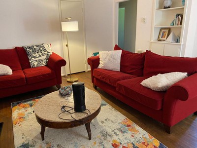 I bought this for my new apartment to go with my red couches and it is perfect. I used the orange in the rug for my accent wall and its tying the whole room together. Super soft too.