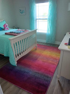 I bought this rug to go in my daughter’s mermaid themed room. It is perfect. She loves it and so do I. The color is bright and fun!