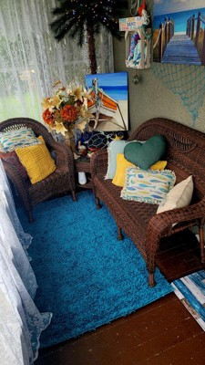 I love the bright blue shag rug! It goes great with our dark brown hardwood floors
