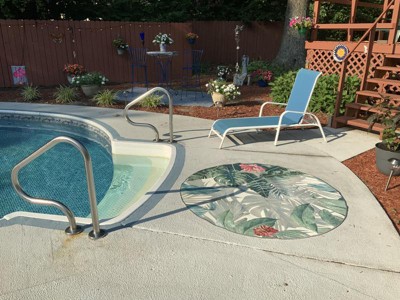 I bought this rug to place near my pool steps. It is so pretty it just makes me feel good looking at. It dries quickly also when it rains!
