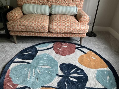 We love this round rug! It is just exactly what we were hoping to find for a very specific room. It fits perfectly and the colors are bold and vibrant. It coordinates with the furniture so well.