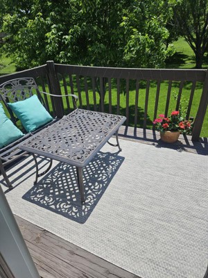 This is a really nice, neutral rug. I decided I needed more color on my porch, so I ordered another rug, but if I had needed a neutral rug, this would have been very nice for the purpose.