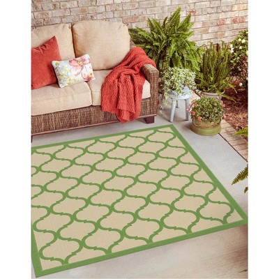 • CARE: For an outdoor rug, remove debris frequently with the use of a broom or blower. To wash, spray the surface with a soap and water mixture, then rinse thoroughly with a garden hose and hang over a railing to dry thoroughly. Rotate for even wear.