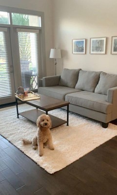 I bought this rug last year during Black Friday, I read a few reviews about being a low quality but I decided to take the risk for the price. Turns out this rug is incredibly comfortable, it is a little thinner than an expensive rug, but the quality is amazing and it looks great in my living room. My friend’s dog peed on it and I got to clean it all without any problems (maybe because it’s thinner as I mentioned). As soon as you place it in your room, make sure to vacuum it so the rug evens it out!
