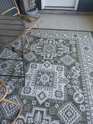 Beautiful outdoor rug Aztec, sage green
