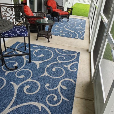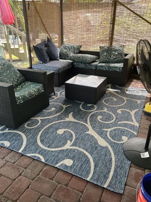 Unique Loom Outdoor Botanical Curl Damask Woven Area Rug