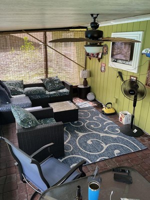 This outdoor rug has received high praise from guests for its vibrant colors, durability, and versatility in various settings. Many guests have used it in outdoor spaces like patios and porches, appreciating its ability to withstand the elements while adding a stylish touch. The rug is easy to clean and dries quickly, making it a practical choice for busy households. Overall, it enhances the aesthetic of any space while providing comfort underfoot.