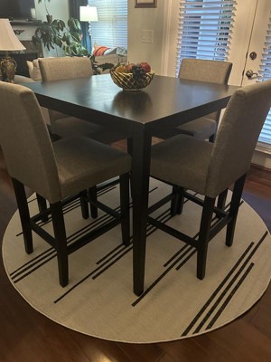 [This review was collected as part of a promotion.] This was exactly the right product for me. It fit just right in a small patio area underneath my 4 person patio table. Colors are cute. Easy to sweep off. Since it’s light colored I will pick it up and store for the winter.