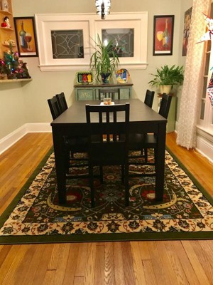 This rug was perfect for my dining room. Although it is not the best quality of rug, I still love it! The colors are great!