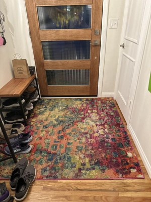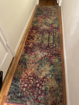 Colorful, but would be better if the different colors were actually different colors instead of using mixed yarns to give an impressionistic effect. Also the rug is having a hard time laying flat, but it does seem to be improving with time.