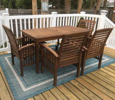 • EASY CARE: For an outdoor rug, remove debris frequently with the use of a broom or blower. To wash, spray the surface with a soap and water mixture, then rinse thoroughly with a garden hose and hang over a railing to dry thoroughly. Rotate for even wear.