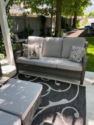• EASY CARE: For an outdoor rug, remove debris frequently with the use of a broom or blower. To wash, spray the surface with a soap and water mixture, then rinse thoroughly with a garden hose and hang over a railing to dry thoroughly. Rotate for even wear.