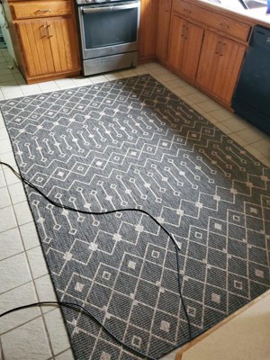 Great looking rug! I couldn't be happier with the color and the way it hides the traffic and mess in our kitchen!