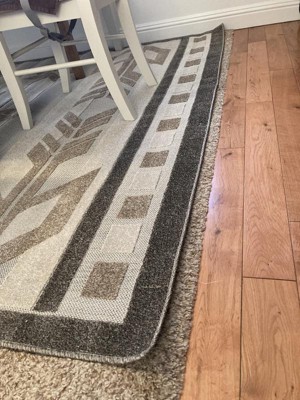 I really like this rug. Yes, it folds up a bit on the corners (which I believe some weights could likely fix) and isn’t totally flat (some rolls to it), but it’s not terribly noticeable. We were looking for an indoor/outdoor rug for our dining area- something that could withstand lots of dropped food from kids, but also give a fun pattern to break up the carpet color, while maintaining our neutral minimalist colors and style. So far it’s held up perfectly and I really like the interest it adds to the room. Would definitely recommend, it’s a great deal!