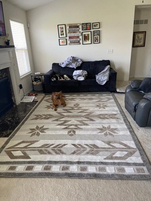 I love this rug. The price was incredible. It was just like the picture and it arrived quickly! The pattern and colors are perfect! I could not be happier with this item.