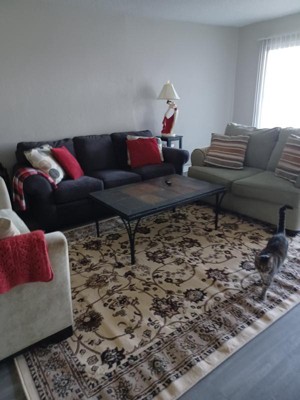 Guests appreciate the elegant design and vibrant colors of the rug, noting its high quality and perfect fit for various spaces. Many find it soft and comfortable underfoot, enhancing the aesthetic of their rooms. While some guests experienced minor issues with color accuracy and thickness, the overall satisfaction with the product remains high. The rug serves as a beautiful addition to homes, making it a popular choice for different areas.