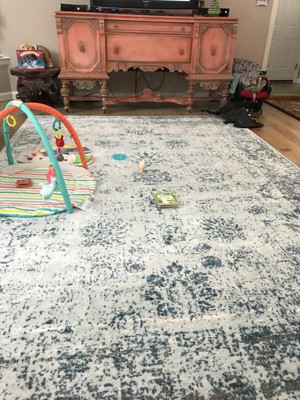 Such a great rug! Large, beautiful print, soft, and the pile height is not high which is what we want and need right now. Perfect spot for our baby to play and brightens up our space. Shipped extremely fast too.
